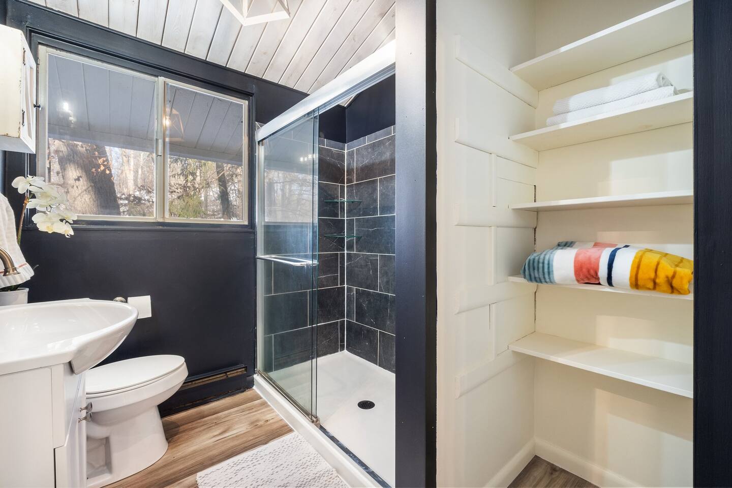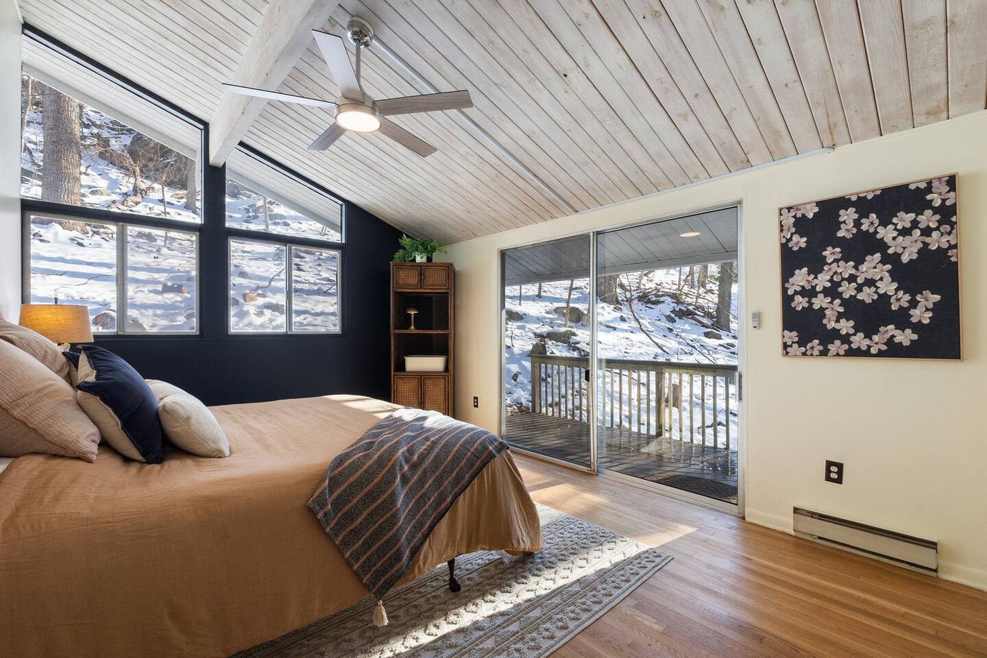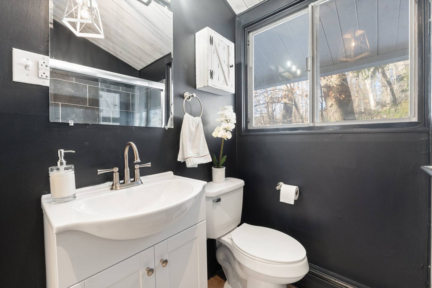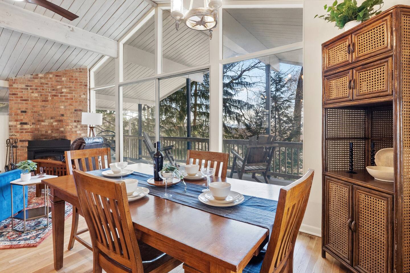 Nestled among the trees, this cozy yet modern cabin offers a perfect escape. Relax by the fireplace, take in serene forest views from the covered deck, or enjoy the open-concept living space with vaulted ceilings and warm wood finishes. Large windows invite natural light, creating a bright and airy feel. Perfect for nature lovers, couples, or small families seeking a tranquil getaway while staying close to local attractions. Experience comfort and charm in this unique hillside haven!