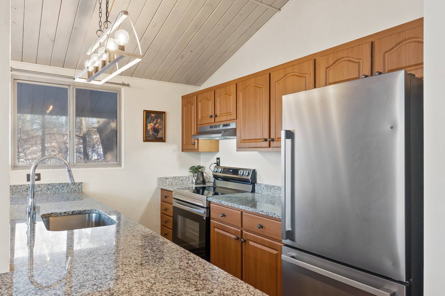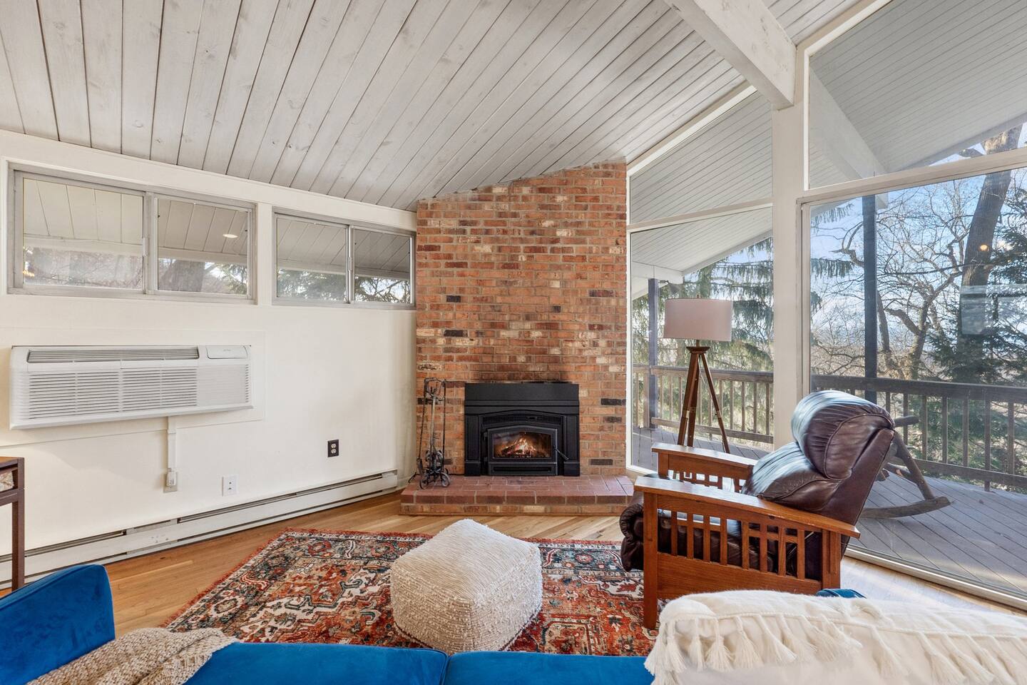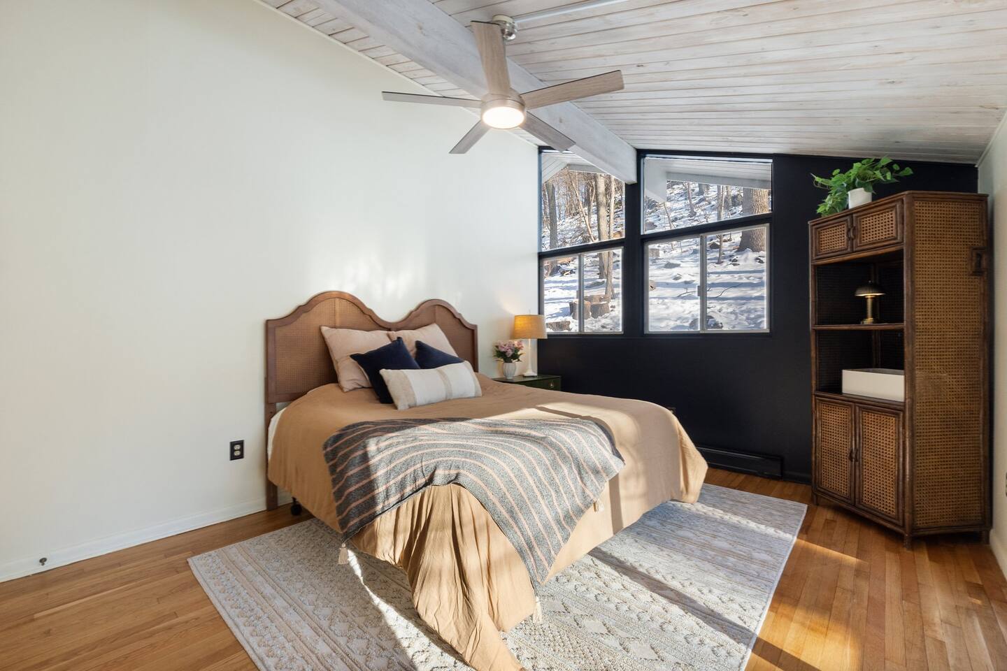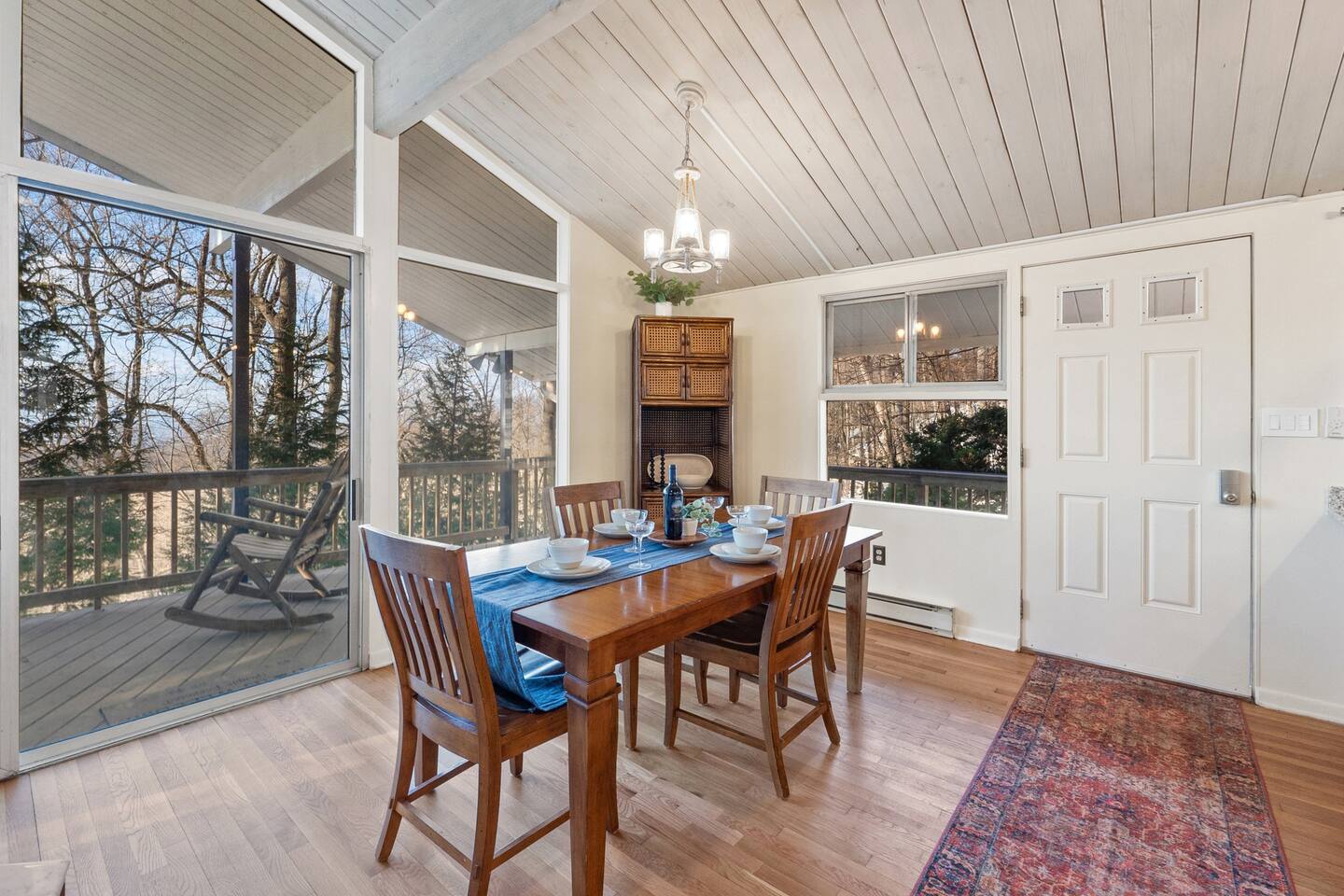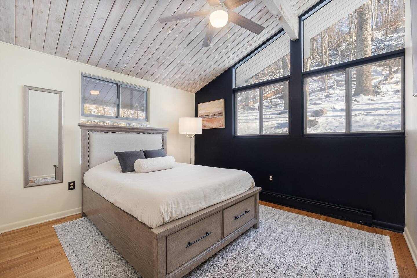 Nestled among the trees, this cozy yet modern cabin offers a perfect escape. Relax by the fireplace, take in serene forest views from the covered deck, or enjoy the open-concept living space with vaulted ceilings and warm wood finishes. Large windows invite natural light, creating a bright and airy feel. Perfect for nature lovers, couples, or small families seeking a tranquil getaway while staying close to local attractions. Experience comfort and charm in this unique hillside haven!
